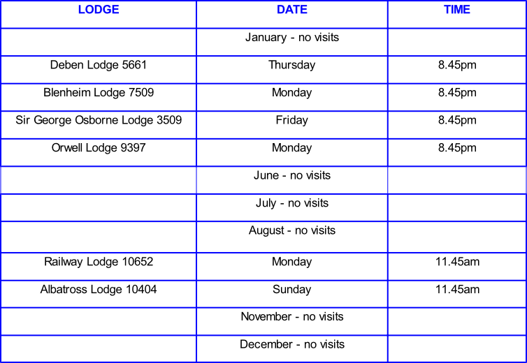 Royal Antediluvian Order Of Buffaloes Ipswich And District Provincial Grand Lodge GLE PROVINCIAL GRAND PRIMO’S VISITS 2026